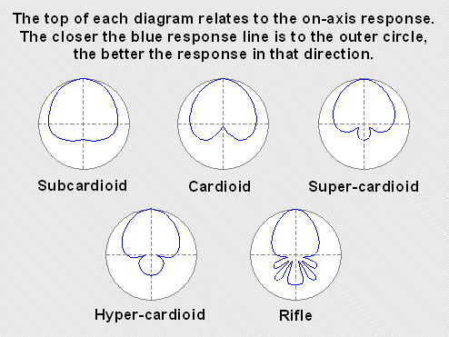 Describes the polar response of a uni-directional microphone whose sensitivity to sound decreases from the front to the back more gradually than in the case of a cardioid type, such that it still has some significant pick-up even at an angle of 180º measured from the front axis (i.e. on the rear axis). The name arises from the fact that its pattern of sensitivity, when plotted as a polar response graph, is somewhere between that of the heart-shaped cardioid pattern and an omni-directional pattern. See the Microphones page for further information. See also Super-cardioid and Hyper-cardioid.